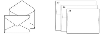 Lo siguiente es el sobre. Los sobres, como las invitaciones vienen en todos los colores y tamaños. Usted tiene la opción de optar por un sobre de color sólido que coincida con su esquema de color invitación o elegir un sobre blanco e imprimir un diseño adecuado en el mismo. El tamaño de la invitación determinará el tamaño de su sobre. Por ejemplo, una invitación A7 (5"x7") quiere decir que necesitará un sobre A7 (5,25"x 7,25") para empatarlo a su tarjeta de invitación.