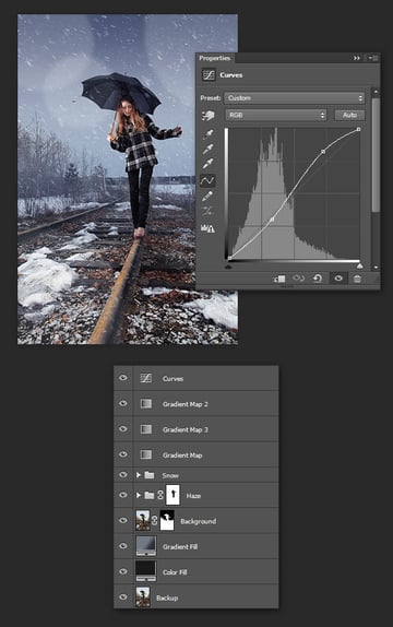 Вы также можете добавить новый корректирующий слой Кривые (Curves), чтобы немного усилить контраст.