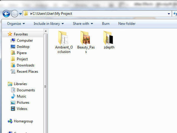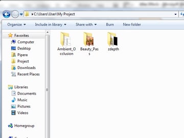 To continue from the last step of the previous tutorial you need to have 150 images rendered in the ambient occlusion and beauty pass folders, and 300 overall in the zdepth folder. Alternately, you can simply use the images provided in the Project Files download.