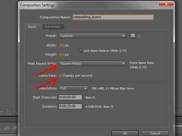 Also, make sure that ‘Pixel Aspect Ratio’ is set to ‘Square Pixels’, and the ‘Frame Rate’ is 25. This is so the video won’t have any stretching and will run smoothly.