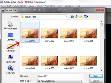 Locate your ‘Beauty_Pass folder and click on the first image of the sequence.