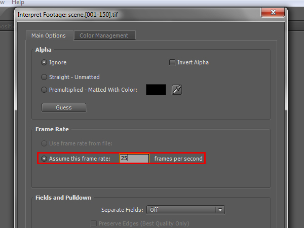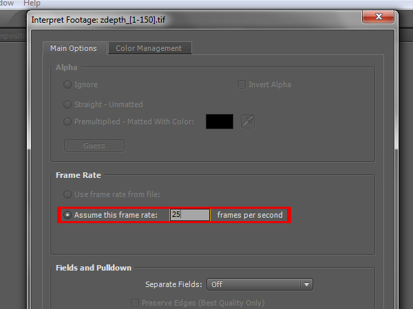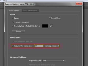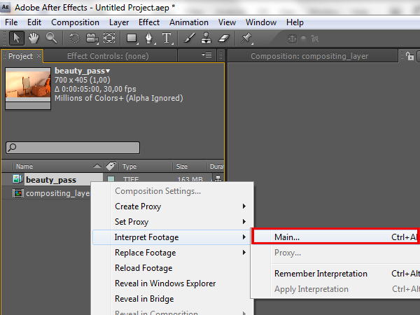 Right click it again and go to ‘Interpret Footage -> Main…’.