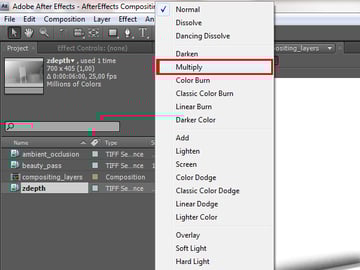 From the menu that comes up, select the ‘Multiply’ option, so that the white color from the ambient occlusion becomes transparent.
