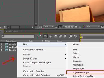 Now you need to create an adjustment layer, so that the zdepth pass can be applied onto all of the layers. Right click on the layer panel, and select ‘New -> Adjustment Layer’.