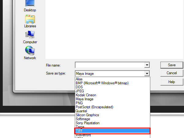 Select the ‘TIFF’ option from the ‘Save as type’ menu.