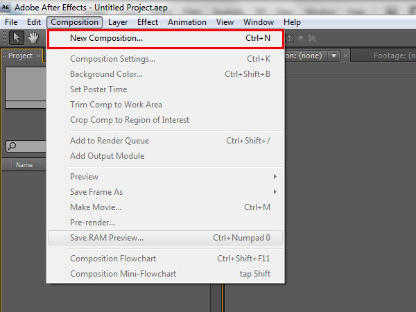 Run After Effects and go to ‘Composition -> New Composition’. This will make a composition that you can start adding the rendered layers to.