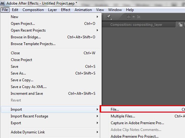 Now to import the final render layer. Again go to ‘File -> Import -> File…’