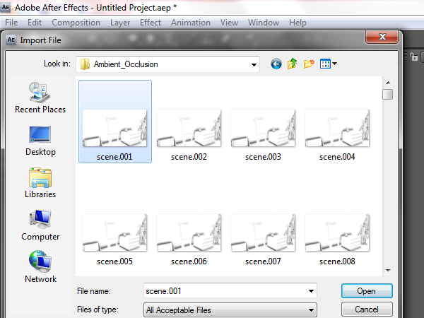 This time navigate to your ‘Ambient_Occlusion’ folder and select the first frame.