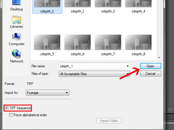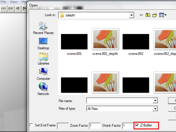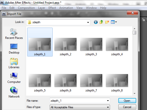 This time go to your ‘zdepth’ folder and select the first image.
