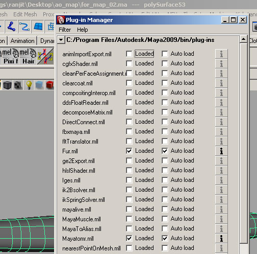 Since texture baking is done through Mentalray, make sure the Mentalray plugin is loaded in your version of Maya. If it’s not, then go to Window>Settings/Preferences>Plugin manager and check the "Mayatomr.mll" "Loaded" and "Autoload" options.