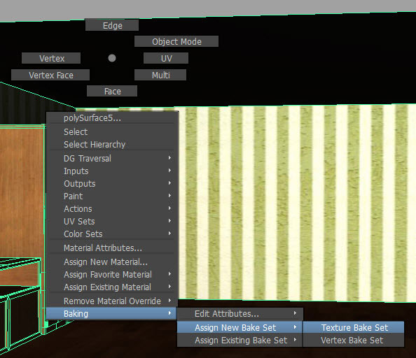 Now select the entire model and "Shift+Right Click", go to Baking > Assign New Bake Set > Texture Bake Set.