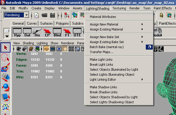 Now from the Rendering module, "Lighting/Shading" menu select the "Batch Bake (mental ray)" option.