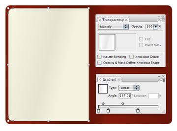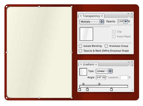 Duplicate the left page and place it on top of itself. Apply a subtle gradient and set the Transparency to Multiply. You can quickly change the darkness of the shading by adjusting the Opacity.