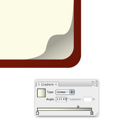 Draw a half-circle and condense it slightly. Place the half-circle under the page curl to complete the effect. Note that the gradient has a slightly lighter edge on the right. This is called reflective light and is an important detail in the overall realism of the page curl.