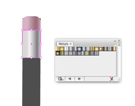 To create the stand-alone pink eraser, draw a rectangle and give it a tenuous gradient. Take a notch out of the edge of the eraser by drawing a random shape and subtracting it from the rectangle using the Pathfinder.