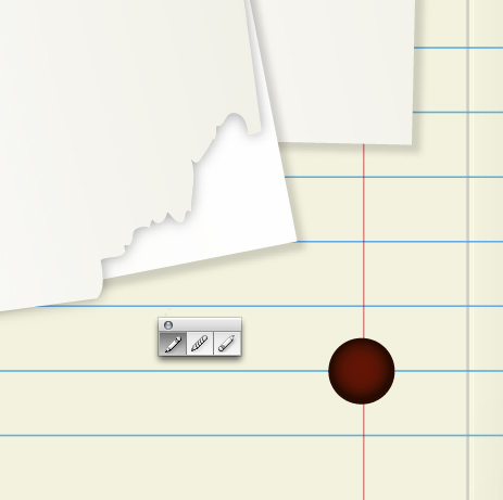 Give the edge of the paper a torn look by drawing an arbitrary shape with the Pencil Tool and using the Pathfinder to subtract the shape from the paper.