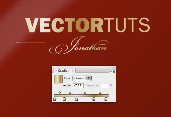 Add some text to the front of the folder. I've used ITC Franklin for "Vectortuts" and Bickham Script for "Jonathan." Apply a gradient from the built-in Metals selection.