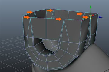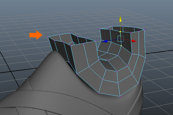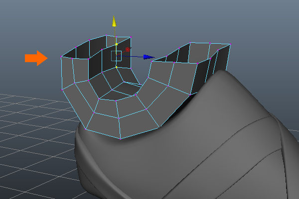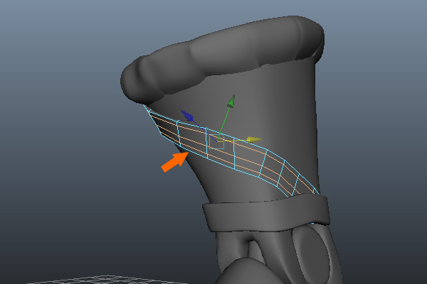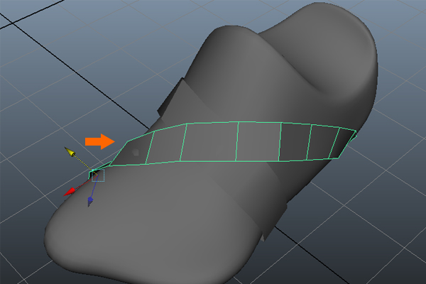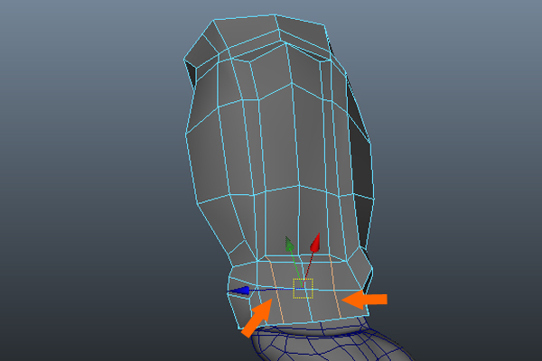 Again insert several more edge loops as shown, which we'll use to add more details to the boot.