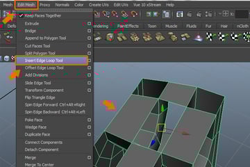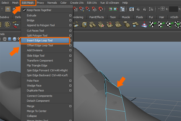 Now, we will add several edge loops for more deformation. So go to the Edit Mesh menu and select the 'Insert Edge Loop Tool’.