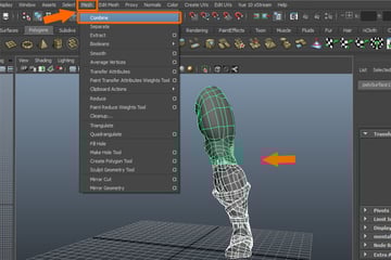 Now, we’ll create the right leg as a mirror of the left side leg. So with all the objects selected, go to the ‘Mesh’ menu in the main menu bar and then select the ‘Combine’ command to combine all the selected meshes into one.