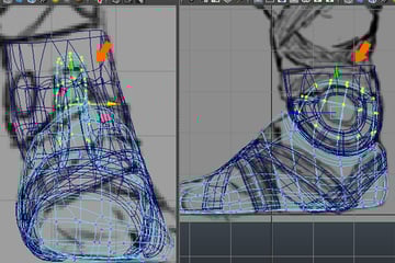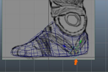 Jump back into the Perspective view and press 'F9' to go into Vertex selection mode, and then drag the vertices one by one so they're closer to the surface of the boot.