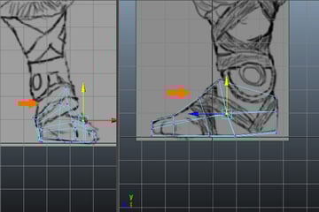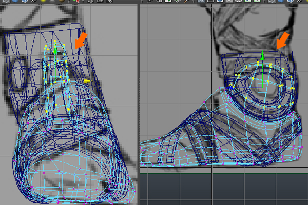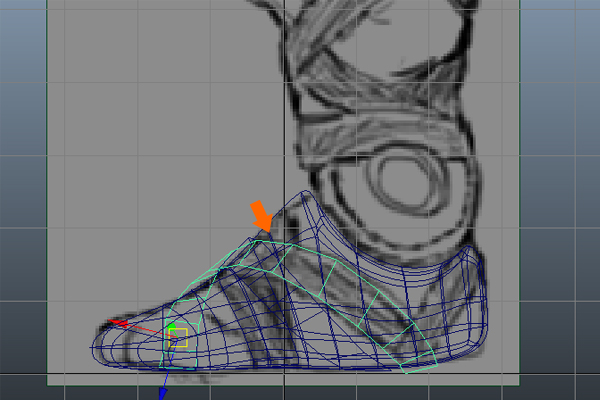 Now jump into the Perspective view and adjust the vertices according to the slope of the boot shape.