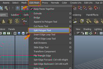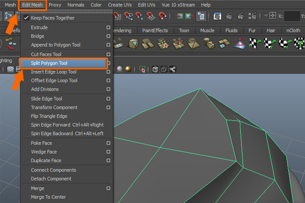 Now, go to the 'Edit Mesh' menu in the main menu bar and select the 'Split Polygon Tool'.