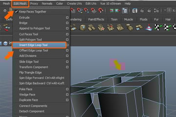 Now, we need to add more edge loops on the top faces to add more detail and deformation. So go to the Edit Mesh menu and select the Insert Edge Loop Tool.