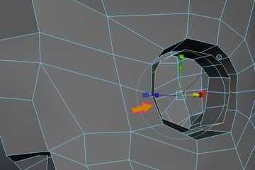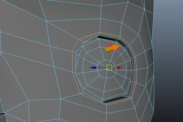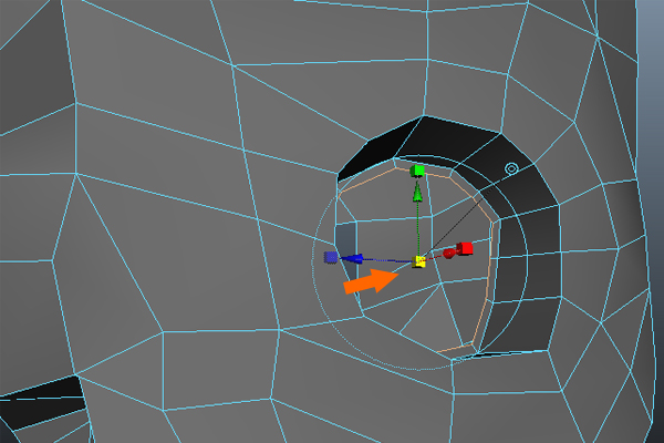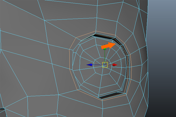 Now press ‘1’ on the keyboard to jump into hard face mode and select the hole’s border. Then apply the ‘Extrude’ command to Extrude it inside.