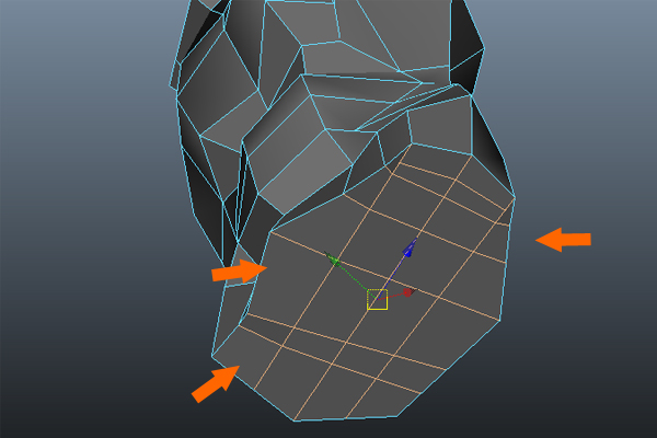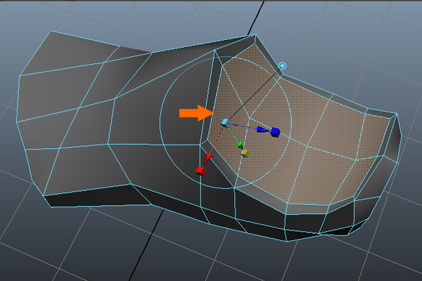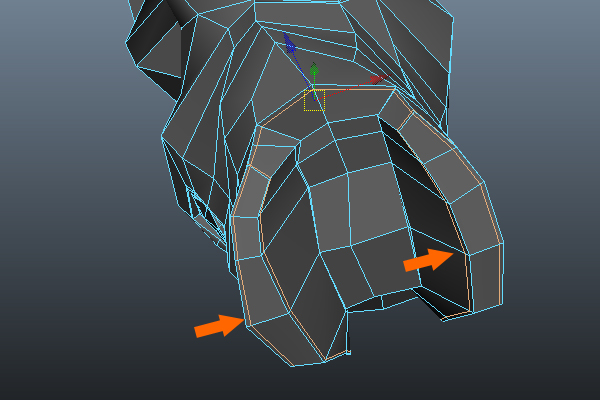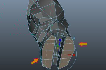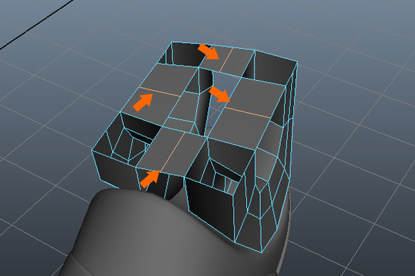 And then select the remaining edges and drag them inwards. This creates a division between the large toe and rest of the toes.