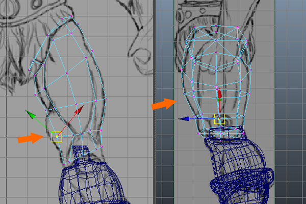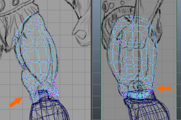 After inserting the new edge loops, we need to adjust them according to the reference images.