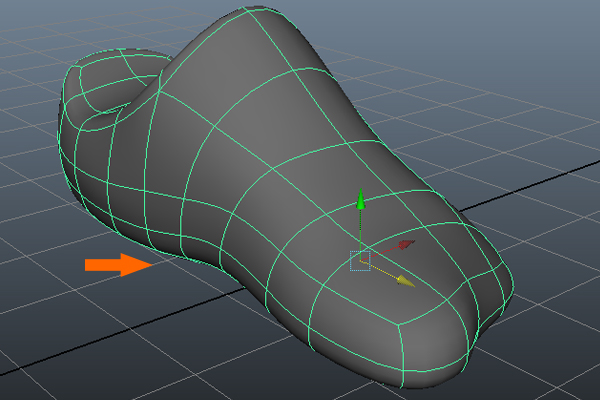 Now drag and insert a couple of edges manually, which will go around to the bottom of the boot as shown.
