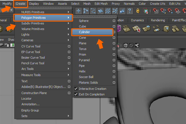 Now, we will begin polygon modeling. So, first click on Create>Polygon Primitives and then choose Cube to draw a cube object.