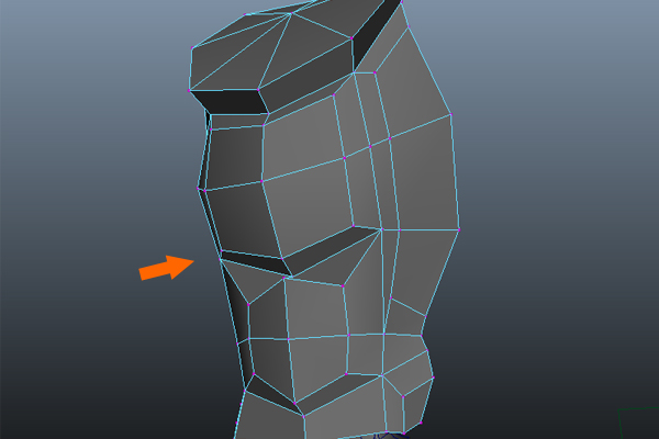 Now, jump back into Perspective view and insert two edge loops in between the faces to add detail to the calf area.