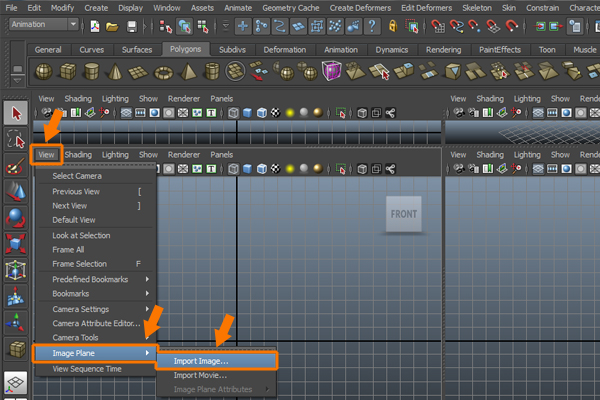 Let’s start Maya and load the reference images of our character in the Front and Left views. To do that, first click on the View menu in the panel view menu and then click on ‘Image Plane’ and then click on the ‘Import Image’ option. Then go to the reference file location and load the appropriate He-Man reference images for both the left and right profiles, which have been provided with the tutorial.