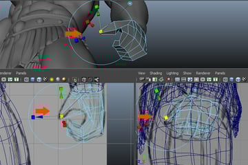 You'll start by blocking out the basic shape and proportions of the upper arm and forearm sections and then begin refining the mesh to create the Deltoids, Biceps, Triceps and forearm muscles before moving on to create the always challenging Hands and fingers.