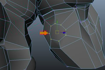 Now, for better poly flow, we need to add cross edges using the ‘Split Polygon Tool’ command.