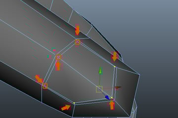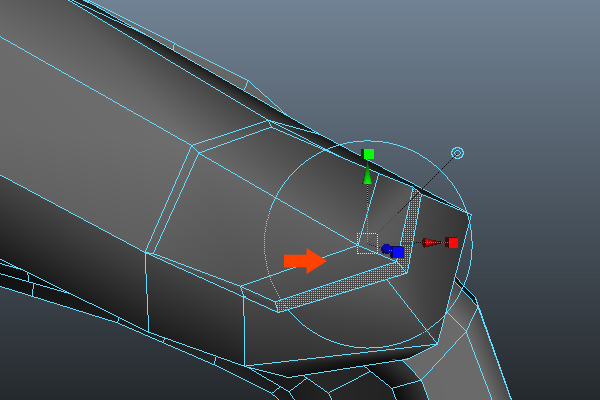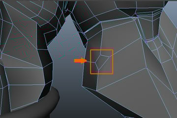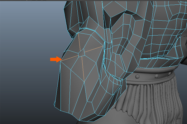 The ‘Chamfer Vertex’ command divides the vertex in four different vertices with a face amongst them. Do the same thing on the opposite side of the forearm too.