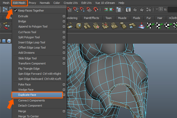 Then go to the ‘Edit Mesh’ menu and select the 'Duplicate Face' command.