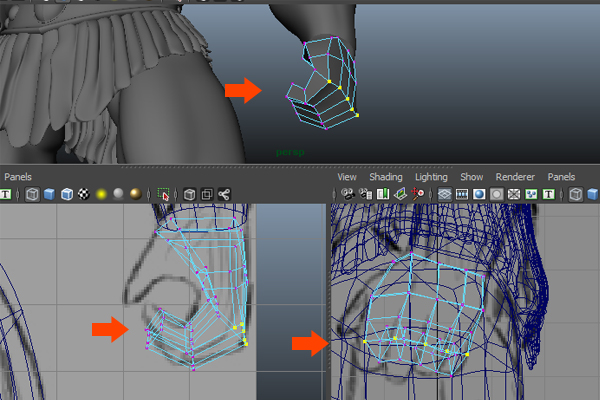 Press the F9 key to jump into Vertex selection mode and then adjust the vertices to cover the forearm area according to the reference images.
