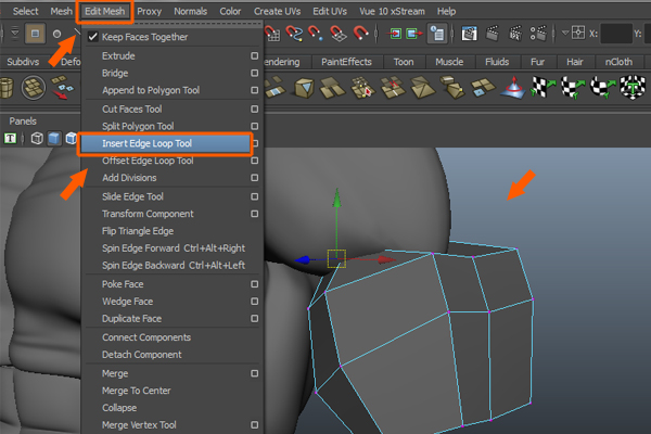 Now, we need to add some extra edge loops. So, go to the ‘Edit Mesh’ menu and select the ‘Insert Edge Loop Tool’.