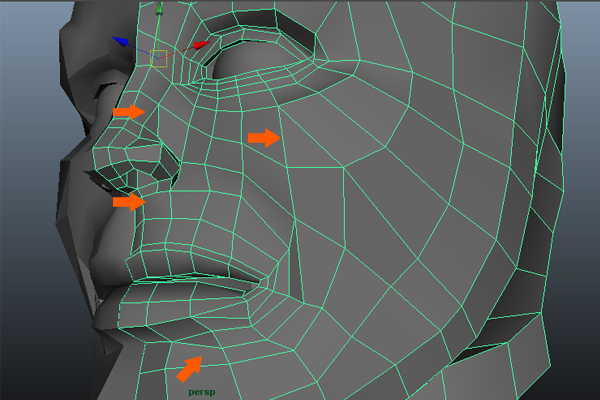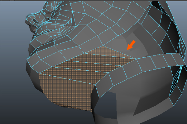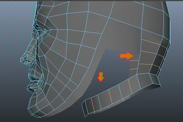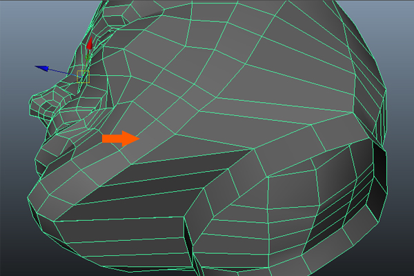 Next, we have to work on the empty space to make the jaw and the chin. So let’s add some edge loops to maintain the proper shape, as shown in the image below.