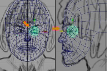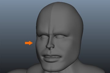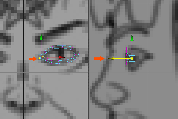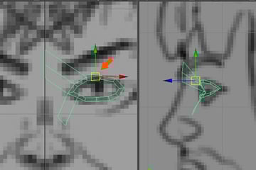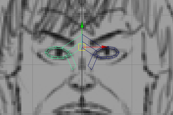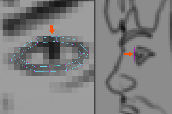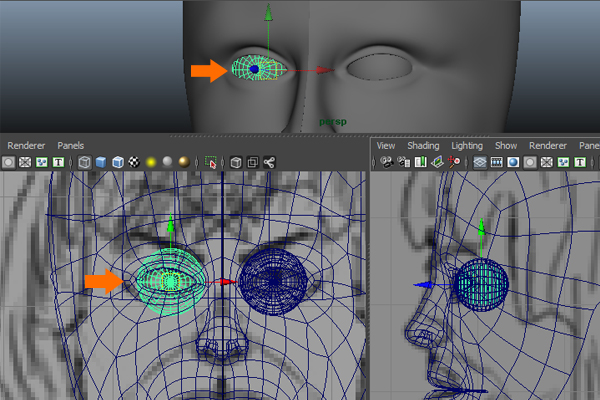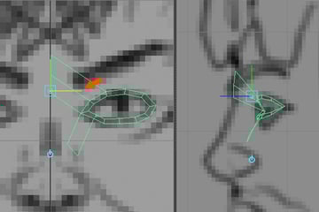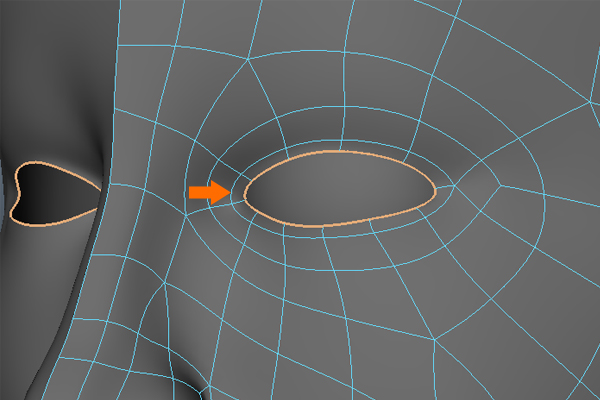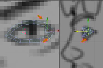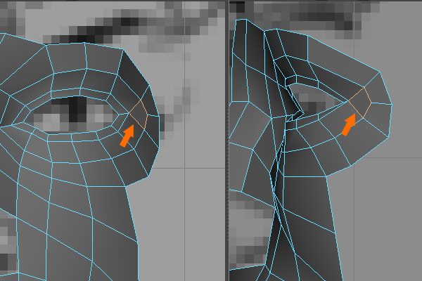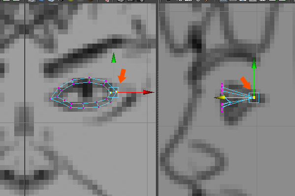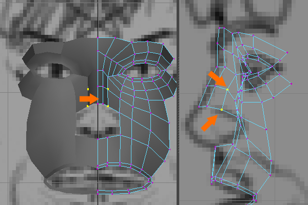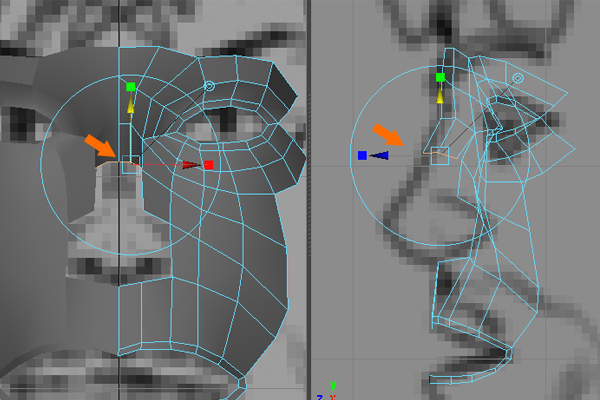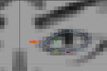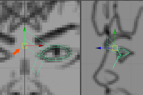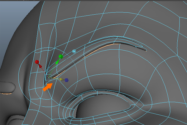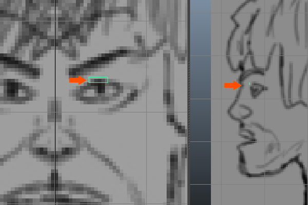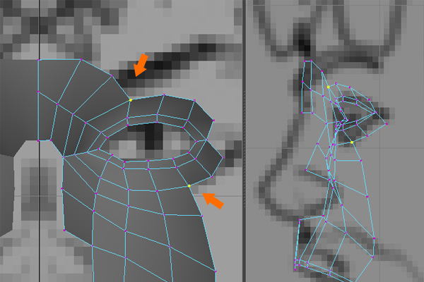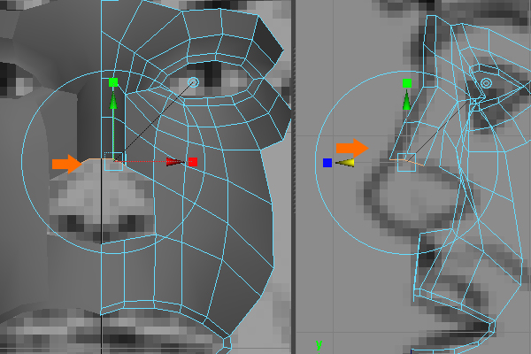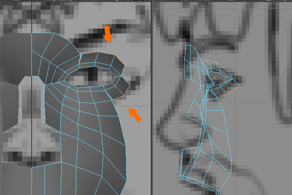 Next, select the other side of the corner vertices and move them on the Z-axis up to the corner of the eye, as shown in the reference image.