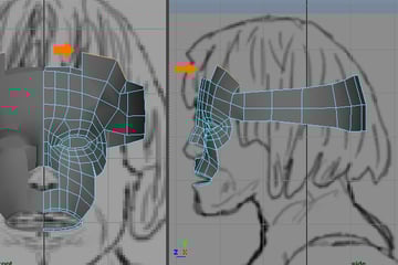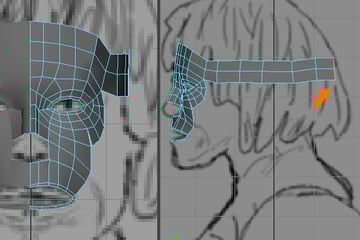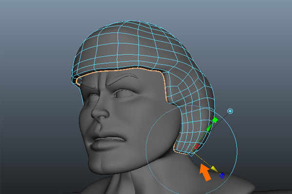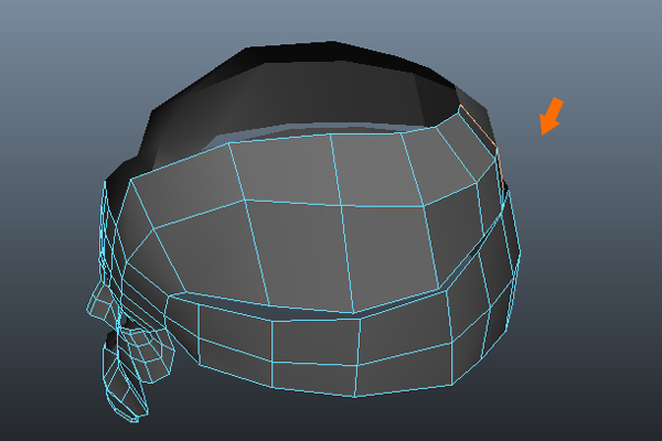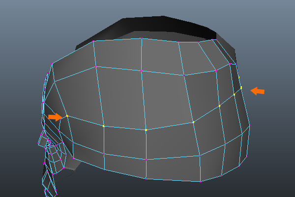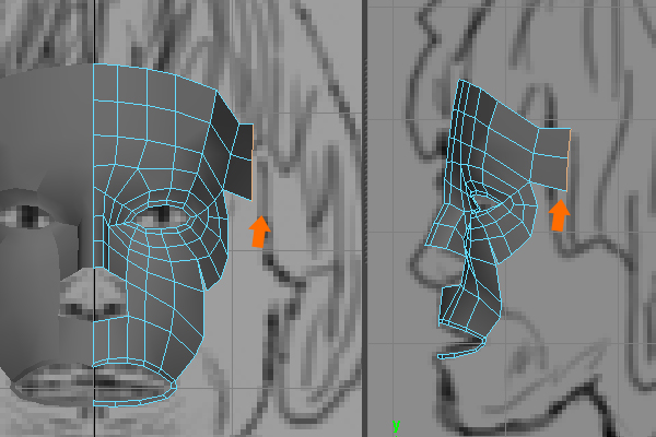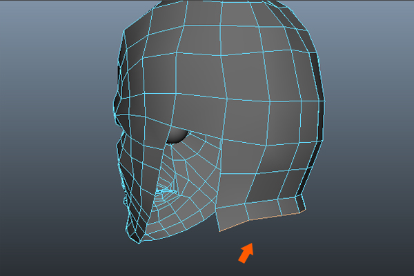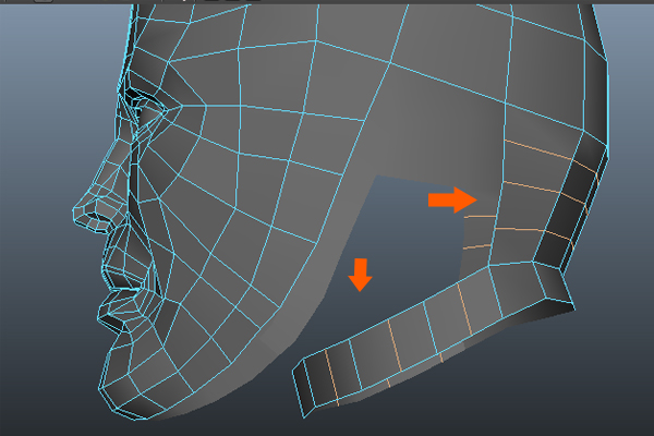 Now, let’s complete the back side of the head. Select the last three edges and Extrude them downward twice, then arrange the shape according to the side view reference image.