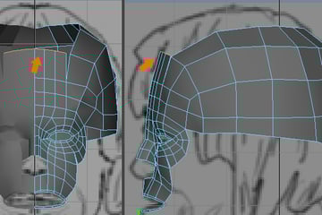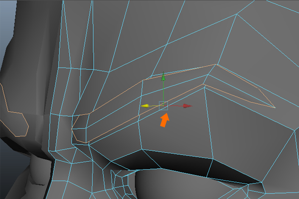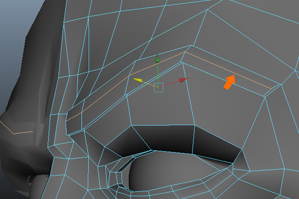 Following the same process, select one lower corner edge of the eye and Extrude and drag it down to the nostril area.