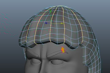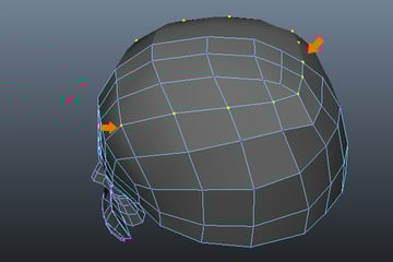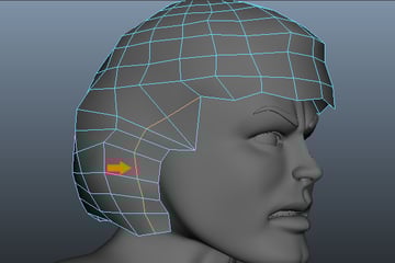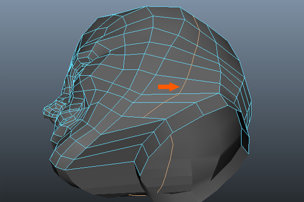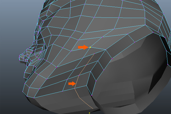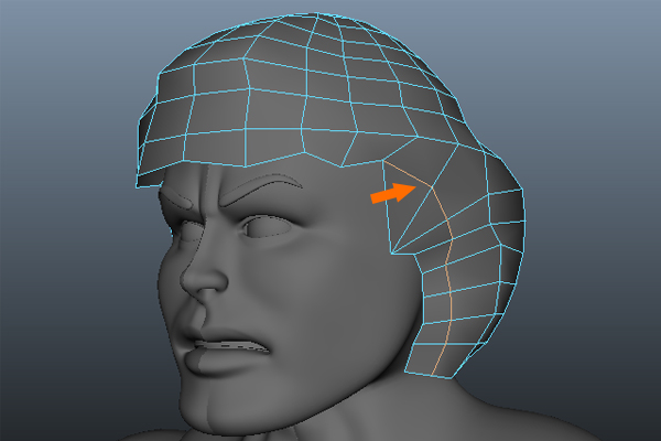 After arranging the vertices for the hair mesh, we need to make an edge loop. So with using the‘Split Polygon Tool’ selected, add edge loops to either side of the ear area.