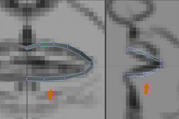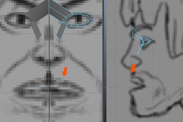 After duplicating the selected face, move it to the upper lip area as shown in the image below.