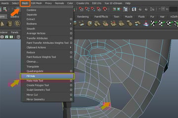 The ‘Fill Hole’ command fills the empty space by creating a new face.