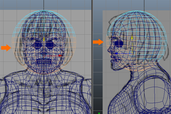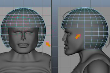 Now, we'll model the character’s hair. So create one sphere polygon object and place it on the head as shown in the image.