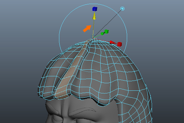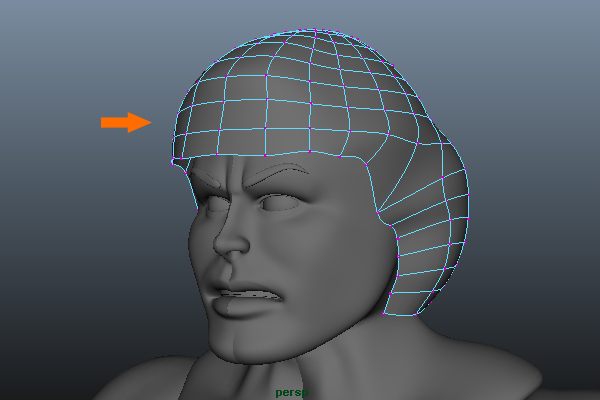 Now select five upper edges around the forehead area and then Extrude them twice. Always work while looking in both the Front and side views to ensure you follow the mesh flow properly according to the reference images.